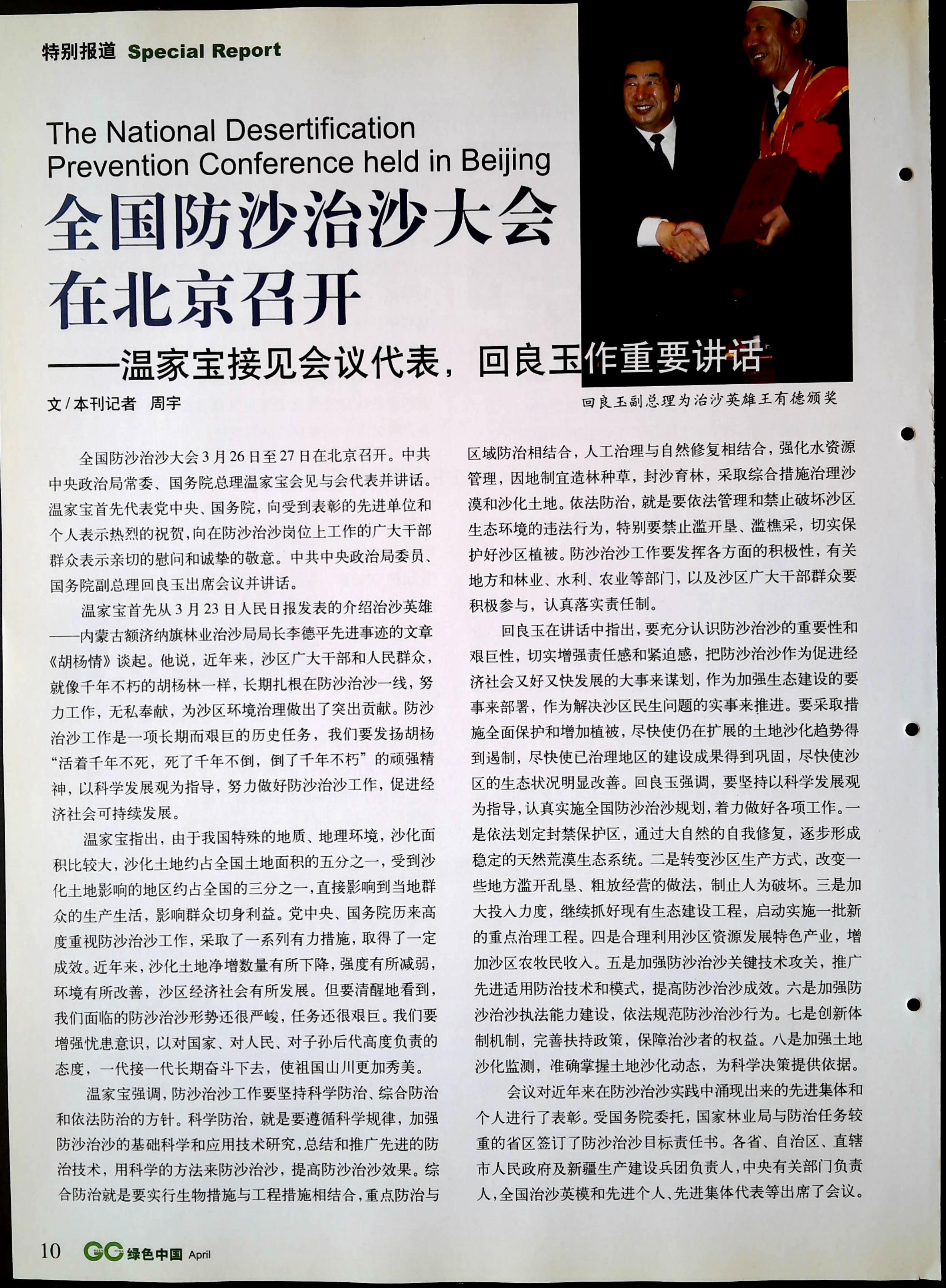 全国防沙治沙大会在北京召开——温家宝接见会议代表,回良玉作重要讲话