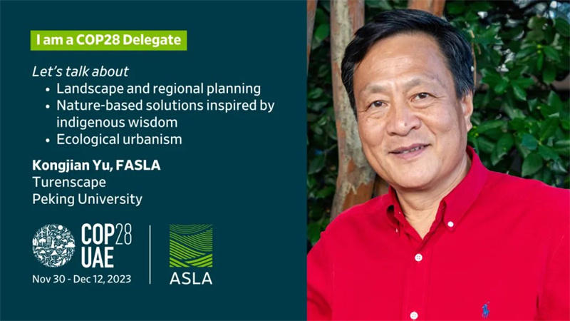 绿色中国12月16日电 (融媒体记者铁铮)在12日闭幕的《联合国气候变化框架公约》第28次缔约方大会期间,北京大学建筑与景观设计学院院长俞孔坚教授在两场高级别会议上作主旨报告,介绍中国“基于自然的解决方案”实践经验,展现了景观设计师在减缓和适应气候变化中发挥作用的风采。