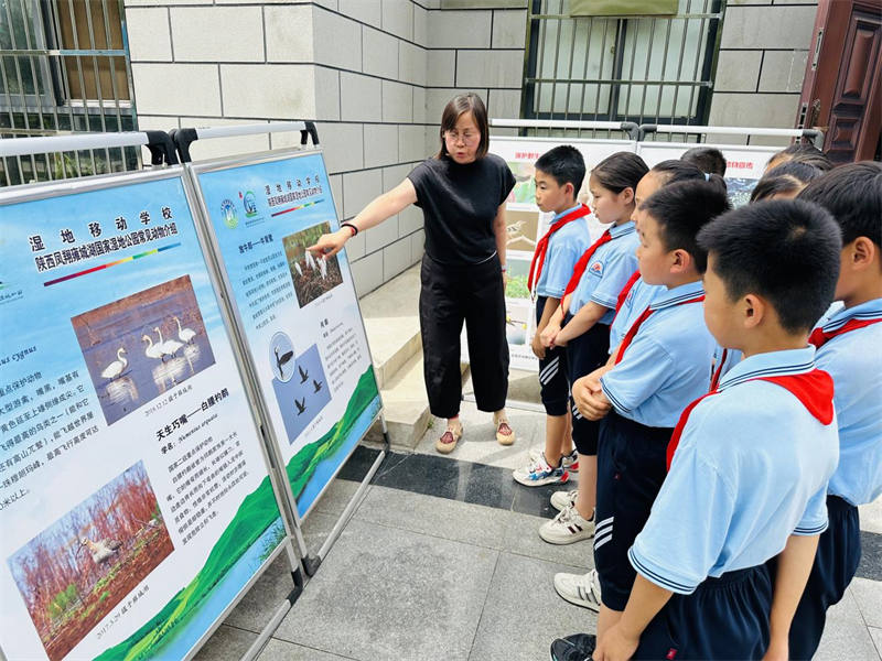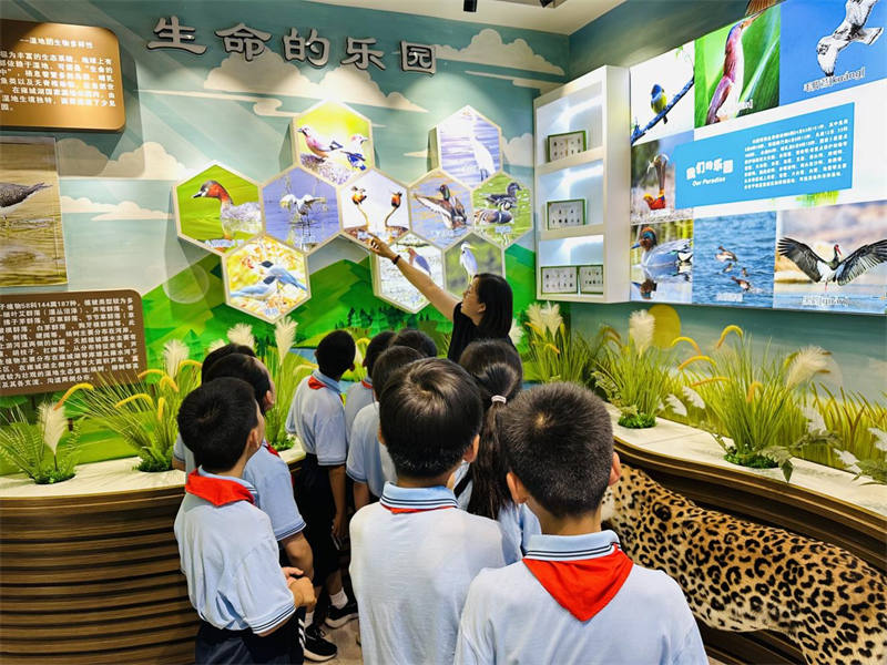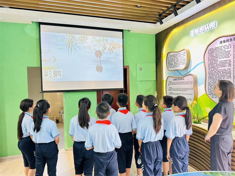 学校组织四年级同学前往凤翔雍城湖国家湿地公园,开展“爱鸟护鸟 共绘生态蓝图”生态保护主题研学实践活动。在雍城湖科普宣教馆,讲解员通过图文并茂的展板、栩栩如生的鸟类标本,向同学们详细介绍了雍城湖湿地丰富的鸟类资源,包括部分珍稀物种的形态特征、栖息环境与生活习性。在生态监控区,同学们看到了湿地公园中鸟类活动的实时场景,亲身感受鸟类与自然的和谐之美。