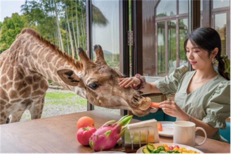 作为国内首个以“长颈鹿互动体验式”为主题、涵盖景区+酒店复合模式的旅游度假区,湖州长颈鹿庄园拥有141间主题客房,是集生态旅游、亲子互动、动物科普、高端度假于一体的综合性文旅项目。