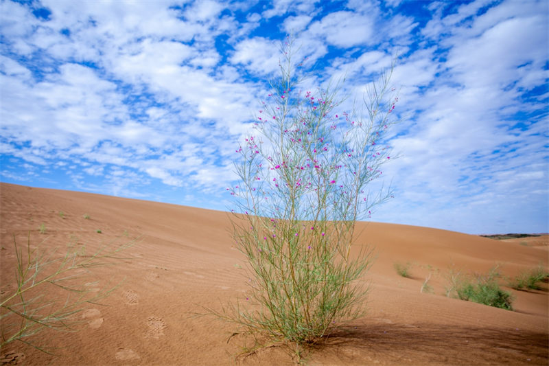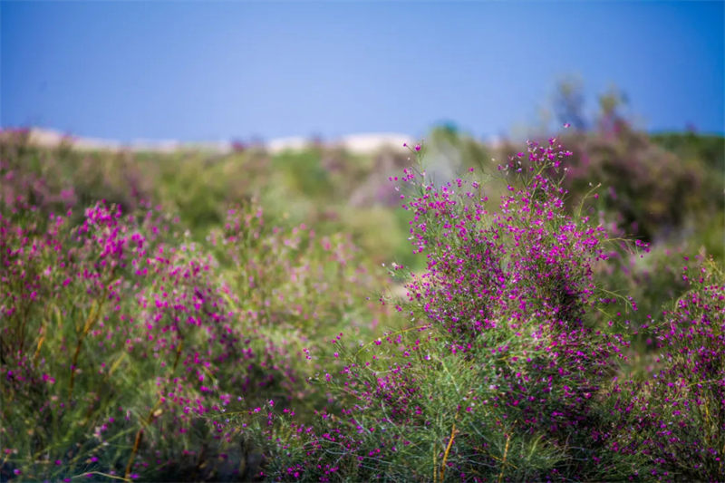在阿拉善,花棒平均保存率高达83.3%,区域植被覆盖度大幅增加,除常见的沙生植物,更有牛心朴子、百花蒿、沙芥等近危物种出现,构成多层次植物群落。