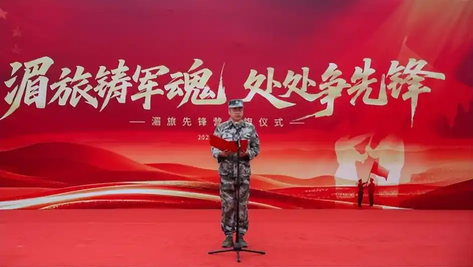随后,“湄旅先锋营”指导员陈清余做表态发言,他表示将把军队的铁纪律、硬作风融入旅游服务全流程,在景区安全保障、游客应急服务、文化讲解等岗位上践行“先锋”承诺,让军魂在文旅一线闪耀。