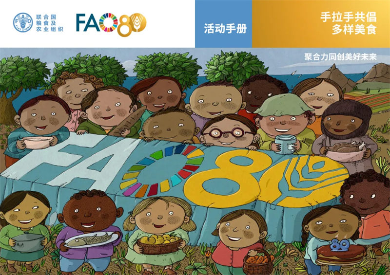 《活动手册 — 手拉手共倡多样美食,聚合力同创美好未来》,包括趣味游戏、互动项目和可持续实践活动,旨在引导少年儿童了解如何共建一个和平、可持续、繁荣且粮食安全的世界。