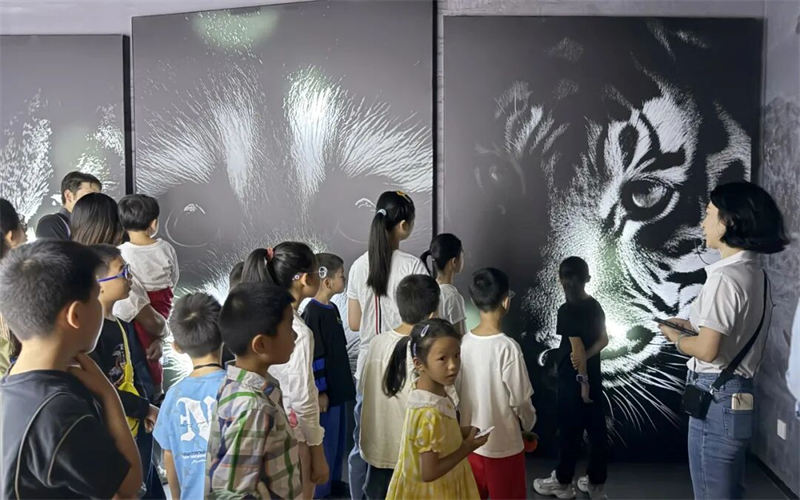 活动伊始,家长与孩子们在野生动物保护宣传馆开启了一段震撼心灵的旅程。从展现野生动物苦难的《地球的眼泪》,到沉浸式还原非法贸易的《远方的哭声》,再到陈列罚没制品的《走丢的伙伴》,一幕幕场景深深触动了每一位大小朋友,让大家深刻理解了保护野生动物的紧迫性。